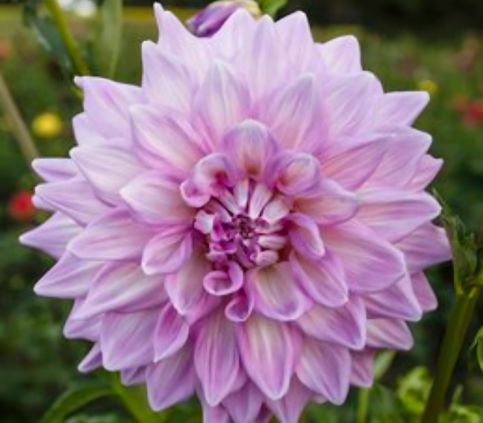 The Almand's Joy dahlia is a large, decorative flower with double petals that can grow up to 8 inches across. The flowers can be lavender, pink, or white, and bloom from summer until frost. Here's an overview of the Almand's Joy dahlia: