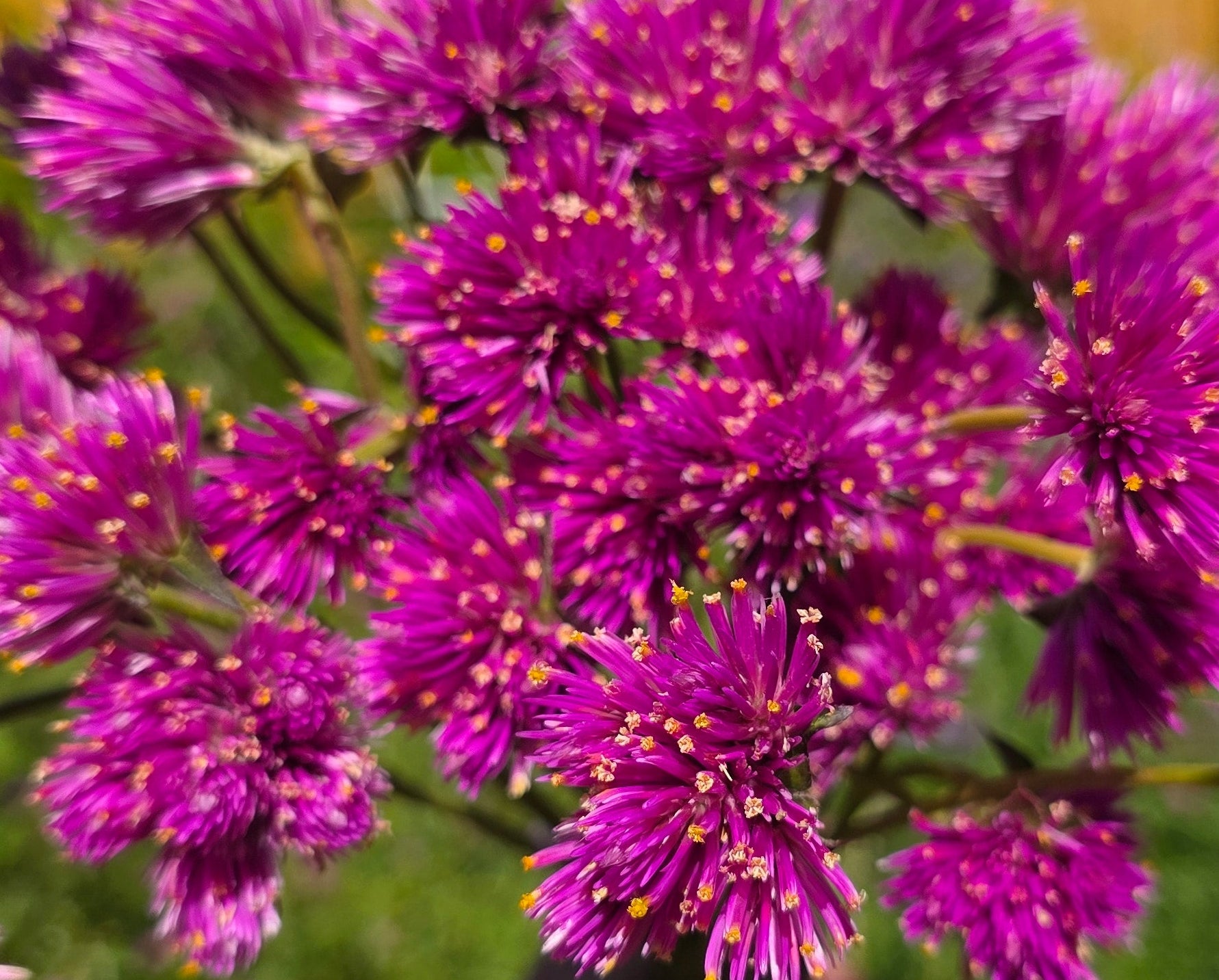 This completely unique species is hands-down the best garden plant that we have seen in years of evaluating new plants. It quickly grows to form a full, dense, landscape specimen, eventually reaching up to 3-4' tall and 1-2' wide. Tons of strong, tall stems are topped with exploding bursts of full, large 1" blooms in hot pink tipped with bright yellow. A showstopper in the garden and conversation piece when cut for a mixed bouquet.