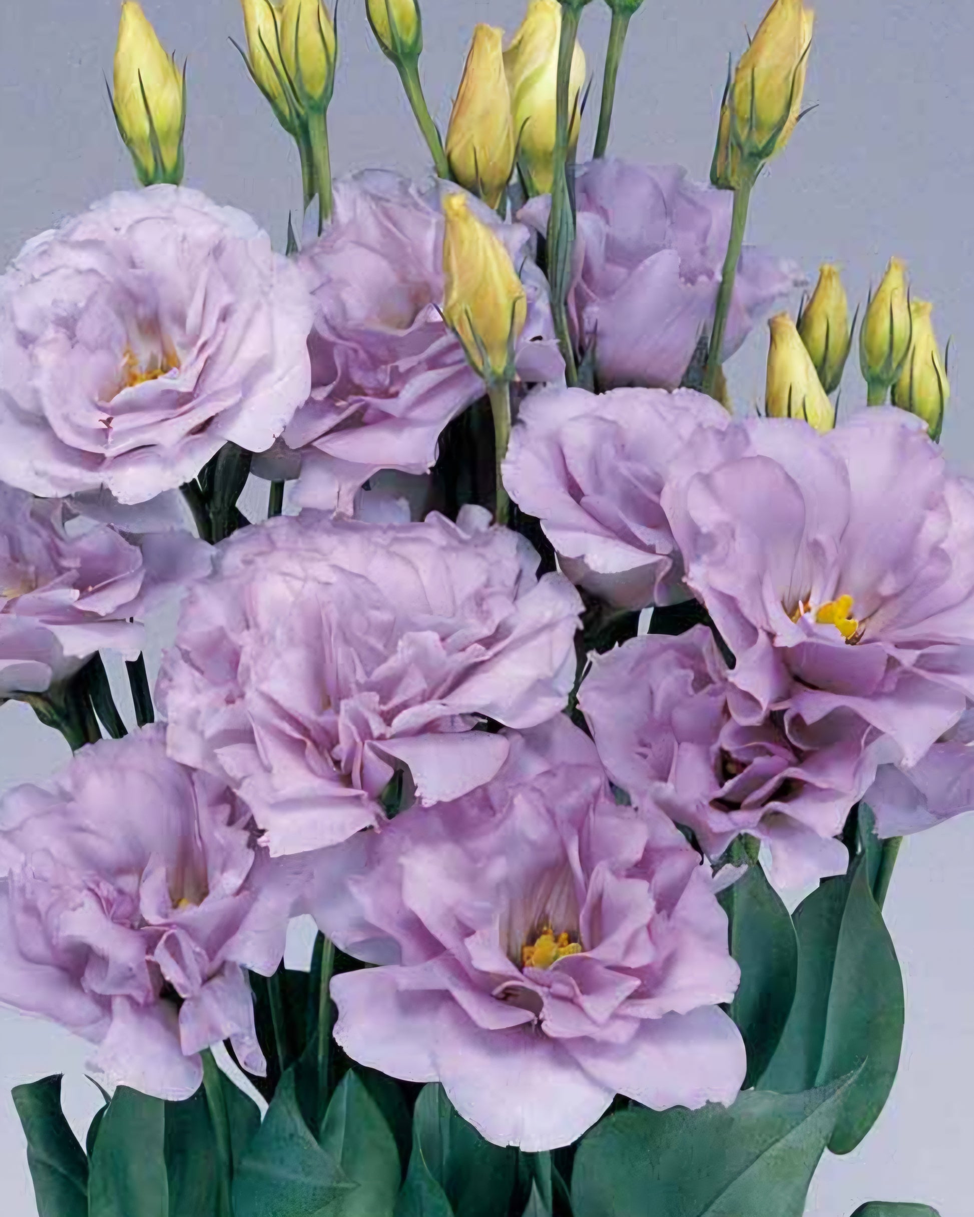 2 1/2–4", fully double blooms are lush with abundant layering and ruffling.Lisianthus is also known as prairie gentian, Texas bluebell, and showy prairie gentian.