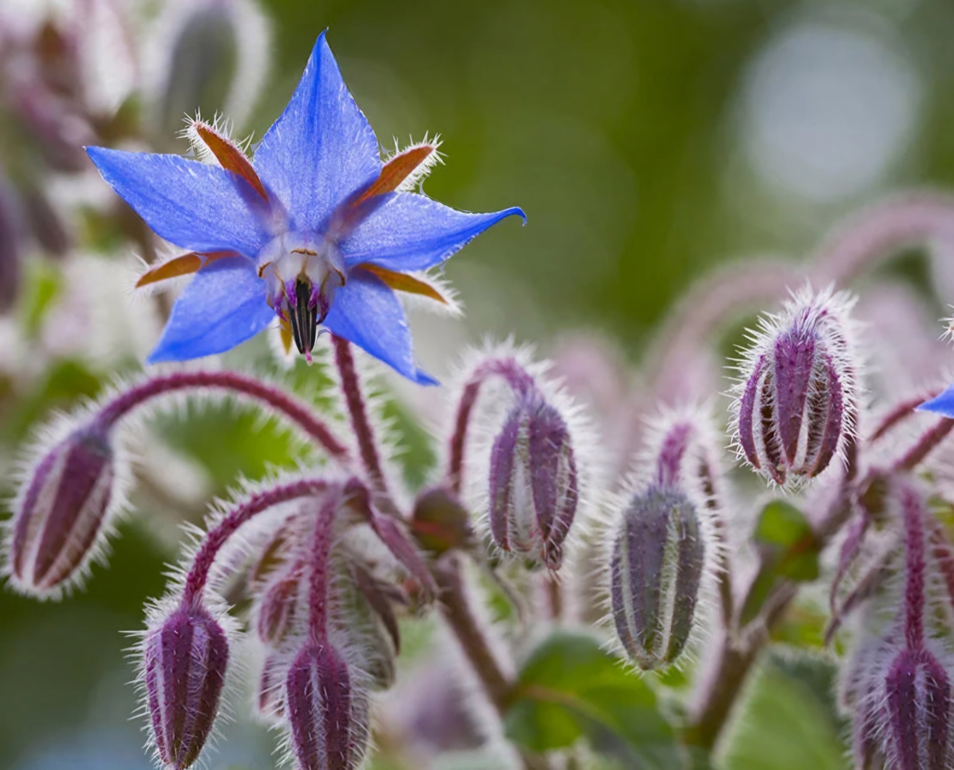 Borage produce some of the most fragrant and delicious edible culinary flowers loaded the Omega-6 fatty acid GLA. With a cucumber-like taste, Borage herb flowers make an easy summer treat for teas, salads, and dried herbal blends. Try as a heat tolerant companion plant for natural pest control.