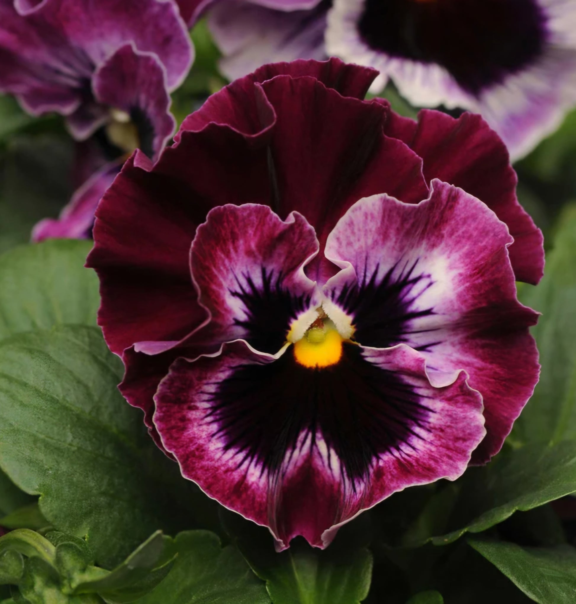 Resembling a ruffled dress, the beauty of Frizzle Sizzle pansies lies in their striking, almost surreal appearance. The petals of these flowers are deeply crinkled and ruffled, giving them a playful, almost cartoonish quality. They come in a wide range of colors, including vibrant purples, blues, and yellows, as well as softer pastels like pink and lavender.