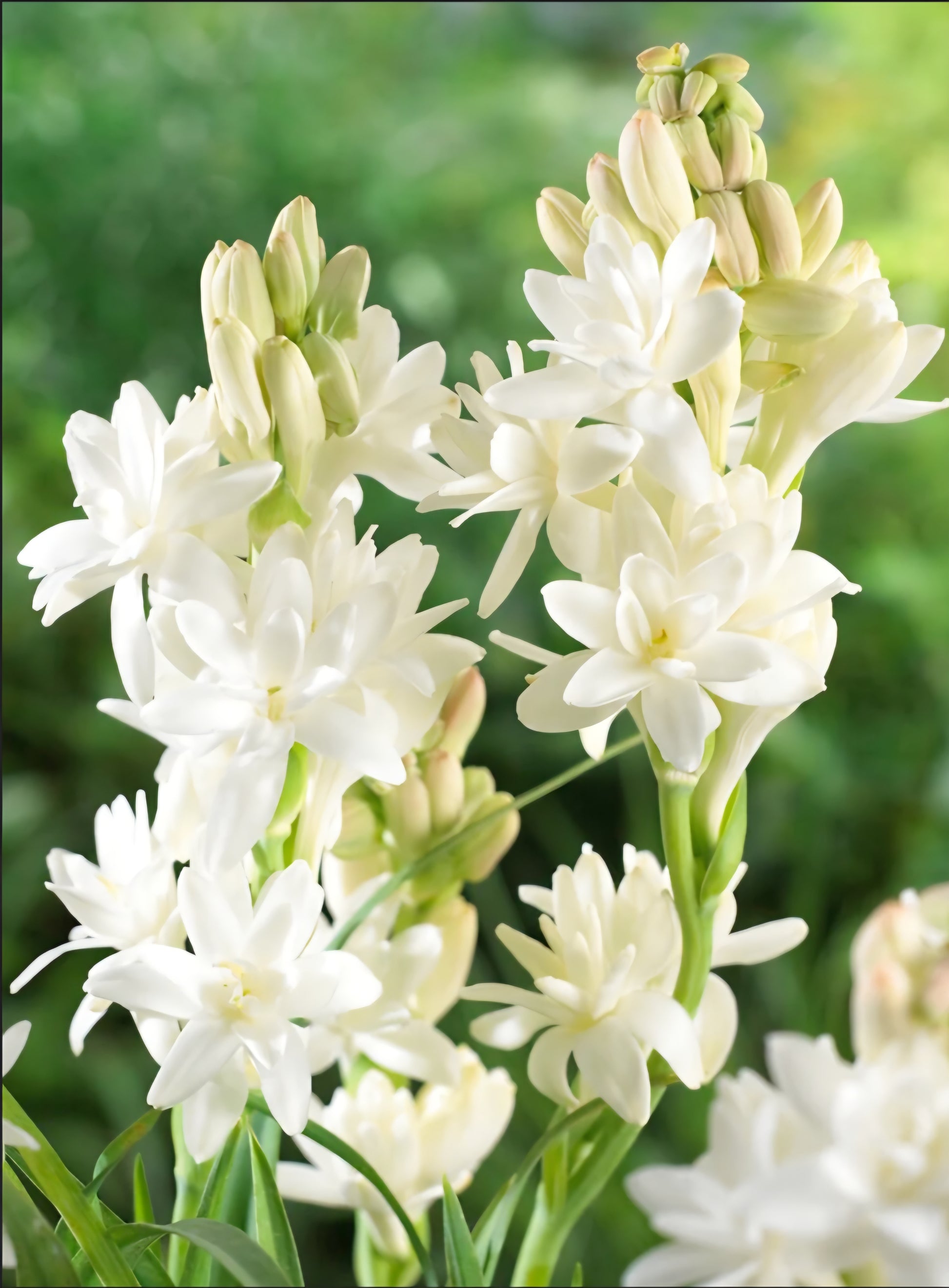 Elevate your garden and home with the unparalleled, intoxicating fragrance of Polianthes tuberosa 'The Pearl,' the classic Double Tuberose. Renowned throughout history for its powerful, sweet, and mesmerizing scent, this tender perennial is a must-have for any fragrance lover.