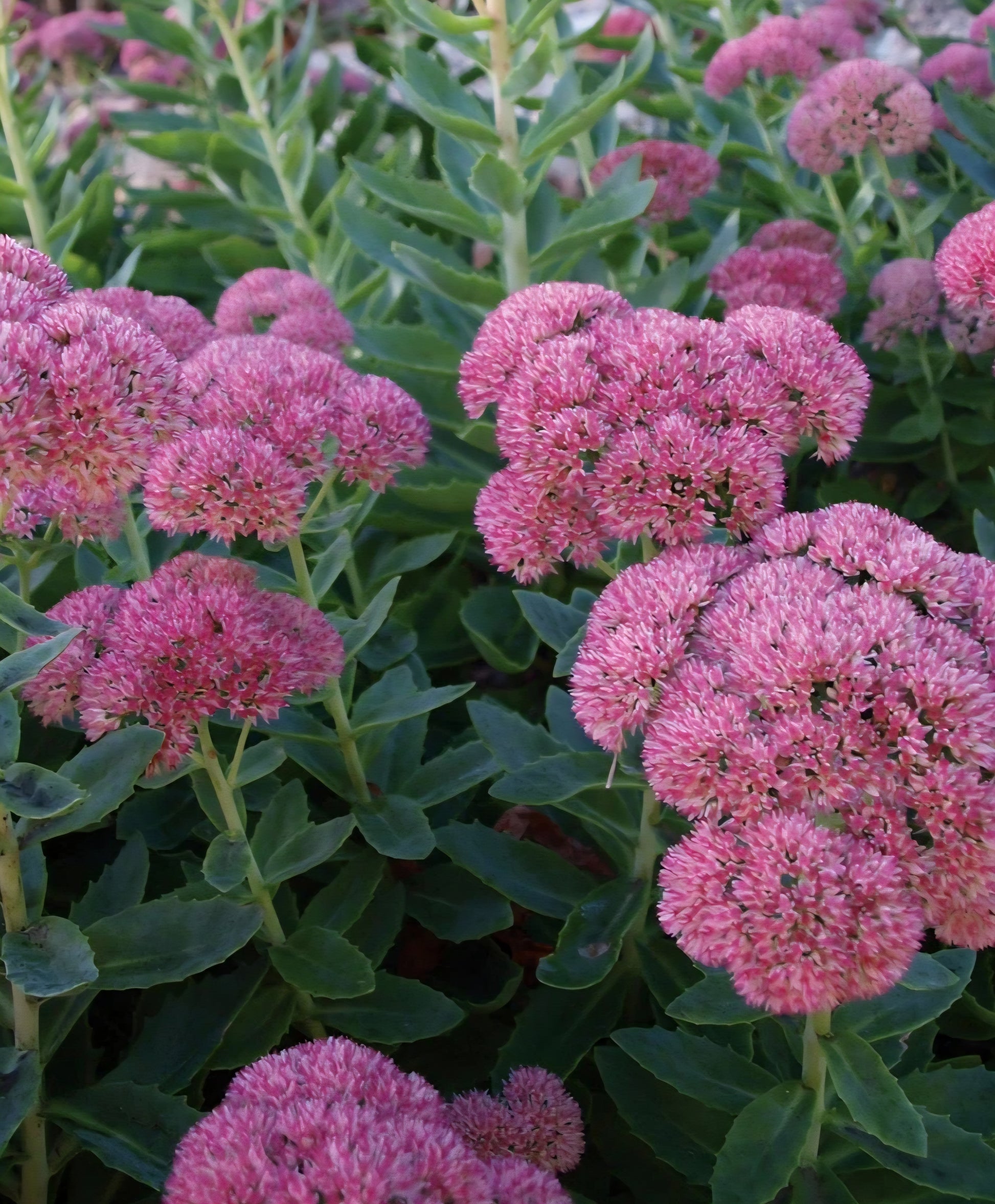 Autumn Joy Stonecrop (Hylotelephium syn. Sedum) brings fall color to the garden with color-changing blooms. Thick, wilt-proof leaves give way to massive heads of clustered flowers in late summer. Blooms start pink, then gracefully darken to a deep rose-red as they age in the fall. These fresh flowers serve as a magnet to butterflies, then spent seed heads attract birds in fall and winter. We love this sedum for more than just its looks! This perennial handles heat, humidity, and mild drought with ease. Plus, it's deer resistant, so you won't have to worry about damage. Try combining this easy to grow plant with fragrant coneflowers and ornamental grasses for an attractive display.